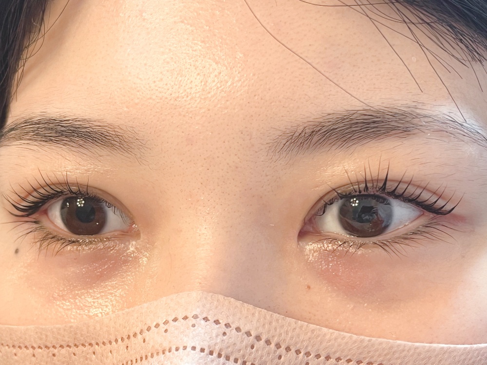 いつもまつげパーマでご来店くださるM様は根元からまつげをグッと立ち上げた束感のあるデザインがお好みです。M様は、まつげの量が多いので、まつげパーマでアイライン効果と束感が現れ、くっきりと。そして根元立ち上げデザインは、毛先がストレートなのでまつげを最大限長く見せることがでるため、とってもキュートでつい見とれてしまいそうな印象的な目元になりますね♡今っぽいキュートな目元になりたい方やまつげを最大限長く見せる、強い目力が欲しい方におすすめです♪